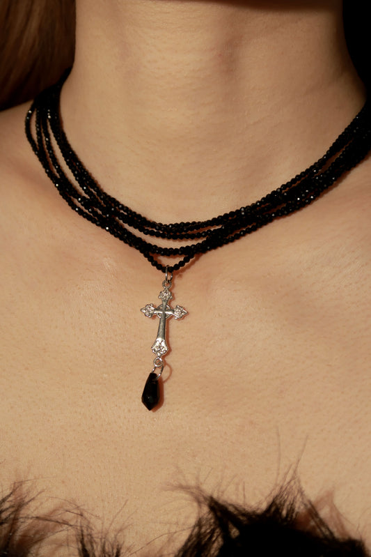 Noir Cross Beaded Necklace