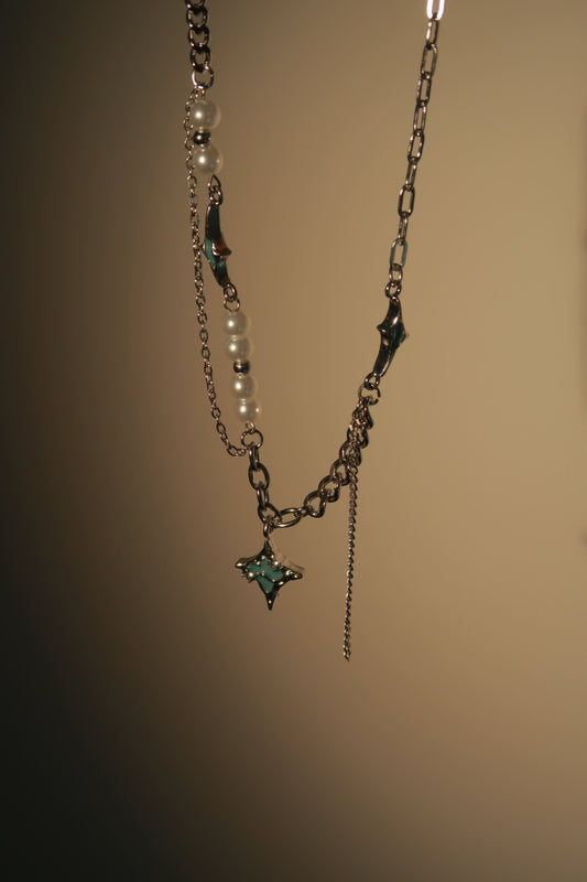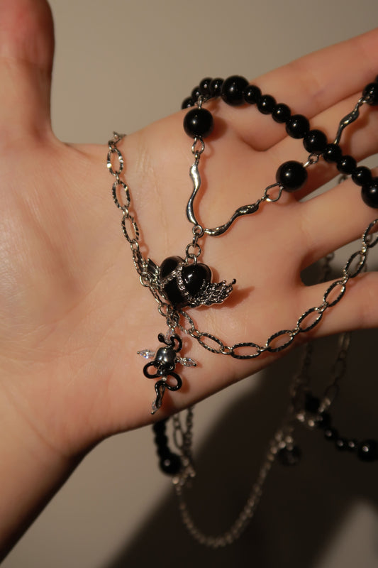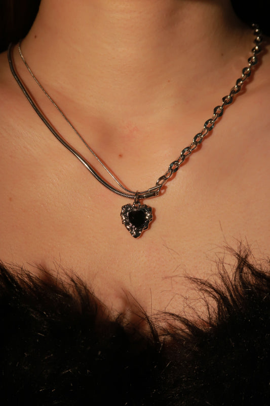 Black Gem Heart-Shaped Pearl Pendant Necklace