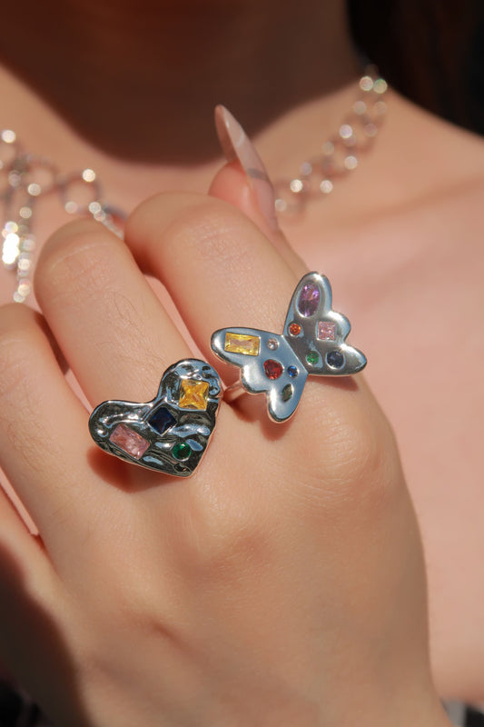925 Sterling Silver Colorful Gemstone Butterfly Ring